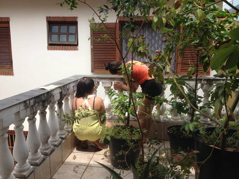 As meninas ajudam pintar os pilares da casa para manter nosso cantinho sempre bonito! E as crianças ajudaram preparar o jantar!